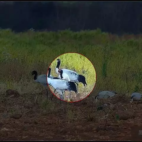 黑颈鹤:是鹤科、鹤属的大型涉禽,体长110-120厘米,体重4-6千克。颈、脚甚长,通体羽毛灰白色,…