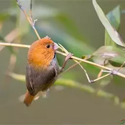 白眶鸦雀是莺科、鸦雀属小型鸟类,体长12-14厘米。嘴黄色、短而粗厚,头顶至后颈褐色沾棕具白色眼圈,…