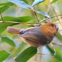 褐翅鸦雀是莺科、鸦雀属小型鸟类,体长11-13厘米。嘴短而粗厚、似鹦鹉嘴,头、后颈和颈侧栗红色。…