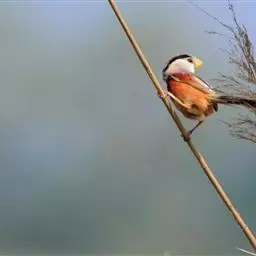 文须雀,别称髭雀、文须山雀,属雀形目、鹆鸟科、画眉亚科。眼先及髭纹黑色,头顶暗灰,…