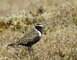 金鸻(学名:Pluvialis fulva):属中型涉禽。体重98-140克,体长230-252毫米。夏季全身羽毛大都呈黑色,背上有金黄色斑纹。翅膀又尖又长,飞行能力很强,秋天迁徒飞到很远的地方去越冬。跗蹠修长,胫下部亦裸出。中趾最长,趾间具蹼或不具蹼,后趾形小或退化。翅形尖长,第1枚初级飞羽退化,形狭窄,甚短小;第2枚初级飞羽较第3枚长或者等长。三级飞羽特长。尾形短圆,尾羽12枚。