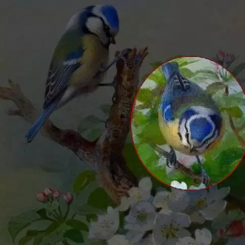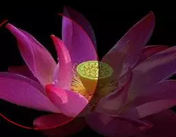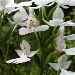 花瓣中部以下白色,上部洋红色,卵形,长2毫米,宽1.2毫米,先端钝;唇瓣3裂,分前后两部分;后部为侧裂片,直立,较大,半圆形,长2毫米,宽2毫米,与中裂片连接处具1个近球形的胼胝体;前部为中裂片,厚肉质,翘起,长约2毫米,上面中央隆起呈圆锥形,基部具可动的关节;距囊状,长约3毫米,基部上方弯曲,末端指向前;蕊柱黄色,粗短,长约1毫米;蕊喙很小,尖齿状,长约0.4毫米;药帽黄色,前端伸长并且翘起,先端近截形带3个尖齿;粘盘柄扁平,着生于粘盘中部,长约1毫米,宽0.3毫米;粘盘鳞片状,长2毫米,宽0.5毫米,两端锐尖。
