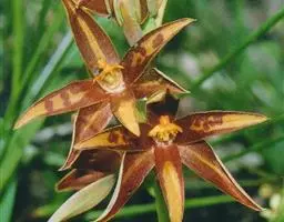 云南石仙桃:根状茎匍匐、分枝,粗4-6毫米,密被箨状鞘,通常相距1-3厘米生假鳞茎;假鳞茎近圆柱状…