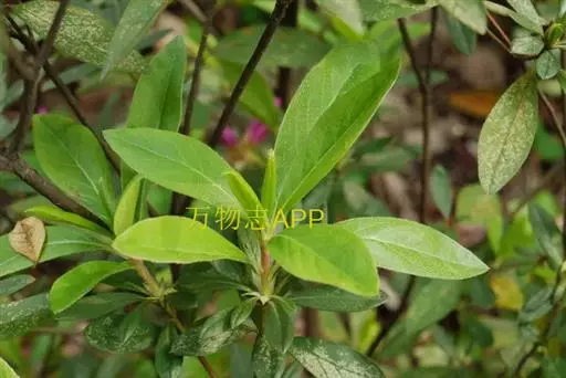 半常绿灌木,高1.5-2.5米;枝开展,淡灰褐色,被淡棕色糙伏毛。叶薄革质,椭圆状长圆形至椭圆状披针形或长圆状倒披针形,长2-5(-7)厘米,宽1-2.5厘米,先端钝尖,基部楔形,边缘反卷,全缘,上面深绿色,初时散生淡黄褐色糙伏毛,后近于无毛,下面淡绿色,被微柔毛和糙伏毛,中脉和侧脉在上面下凹,下面显著凸出;叶 柄长3-6毫米,密被棕褐色糙伏毛。