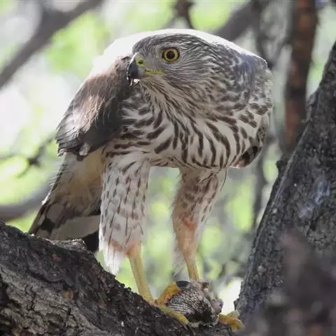 红尾鵟捕鼠红尾鵟在捕食上奉行机会主义。它们的食物主要包括各种小型哺乳动物、鸟和爬行类,例如啮齿类、松鸡、鹌鹑、水鸟、蝙蝠、鼩鼱、蛇、蜥蜴、甲壳类、昆虫等等。