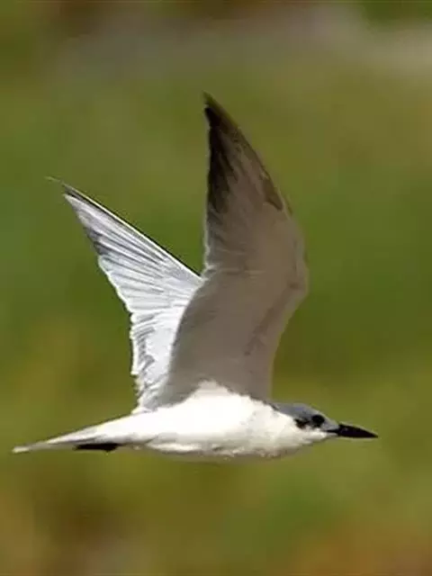 鸥嘴噪鸥,中型水禽,体长31~39厘米。夏羽额、头顶、枕和头的两侧从眼和耳羽以上黑色。背、肩、腰和…