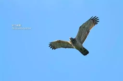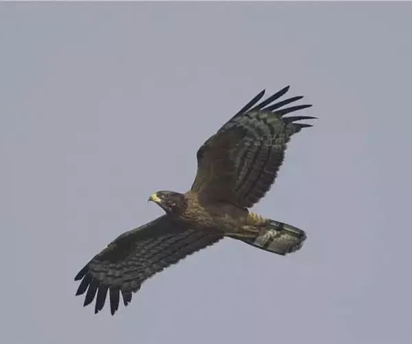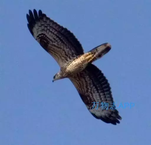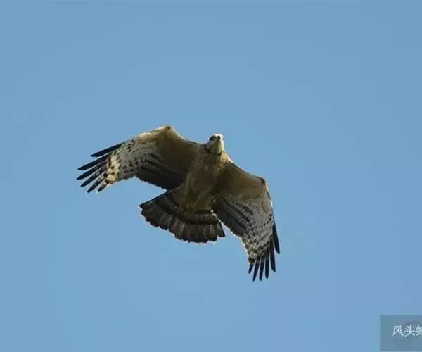 凤头蜂鹰(学名:Pernis ptilorhynchus):又称东方蜂鹰,共有6个亚种。体长为50-62厘米,体重800-1200克。头后及枕部羽毛狭长,形成短羽冠,常明显露出。上喙边端具弧形垂突,适于撕裂猎物吞食;基部具蜡膜或须状羽;翅强健,翅宽圆而钝,扇翅及翱翔飞行,扇翅节奏较隼科慢;跗跖部大多相对较长,约等于胫部长度。雌鸟显著大于雄鸟。具对比性浅色喉块,缘以浓密的黑色纵纹,并常具黑色中线。飞行时特征为头相对小而颈显长,两翼及尾均狭长。尤喜食蜂类,主要以黄蜂、胡蜂、蜜蜂和其他蜂类为食,也吃其他昆虫和昆虫幼虫,通常栖息于密林中,一般筑巢于大而多叶的树上,繁殖期为4-6月。每窝产卵约2枚。分布于中国、俄罗斯的西伯利亚南部至萨哈林岛,日本和朝鲜,越冬于菲律宾、马来西亚和印度尼西亚,部分留居于印度、缅甸、泰国、马亚西亚,非律宾和印度尼西亚。
