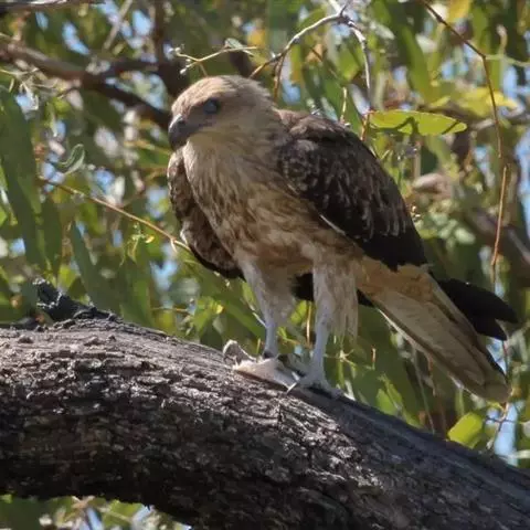 白肩雕:又名御雕,是大型猛禽。体长73-84厘米。体羽黑褐色,头和颈较淡,肩部有明显的白斑,在黑褐…