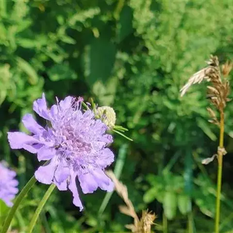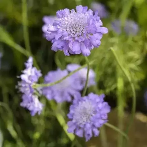 紫盆花为1-2年生草本花卉。莳养者可在第一批种子成熟后随采随播,精心养护,次年早春开花。也可将种子贮藏起来,待到次年春暖花开时播种,这样植株便可在9-10月开花。