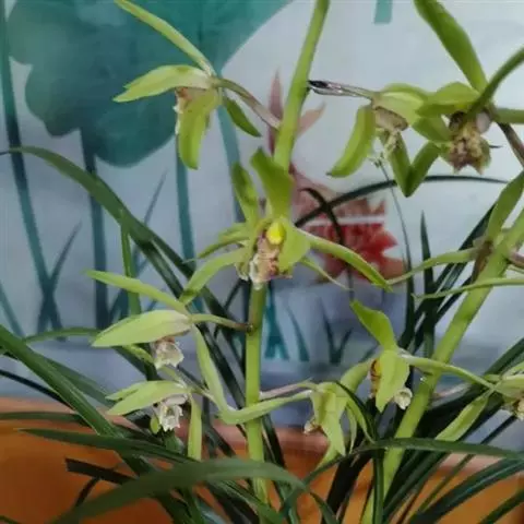 建兰素花,绿白色,清香,一枝开花5至12朵。叶色钢青,细而挺拔,有铮铮铁骨之相,所以叫铁骨素。在日…
