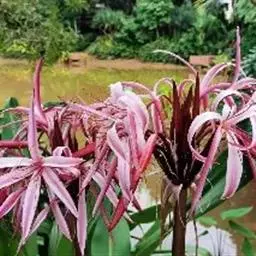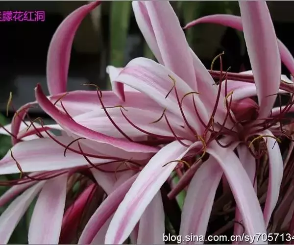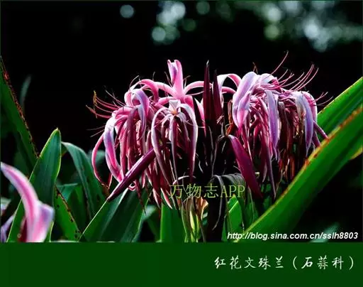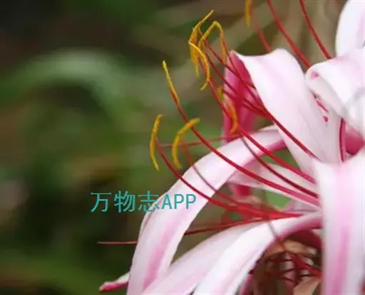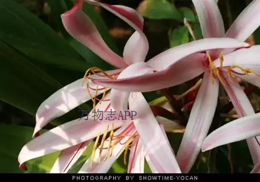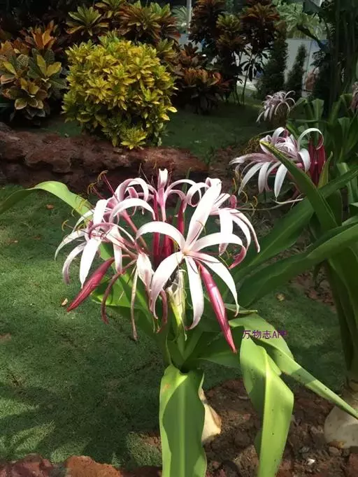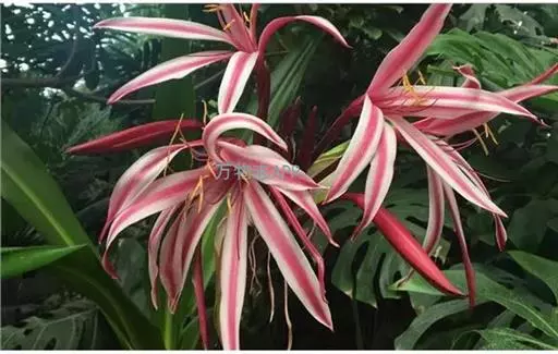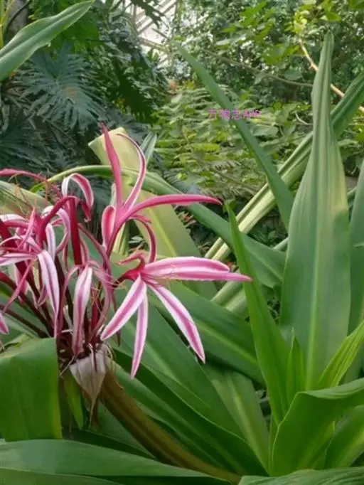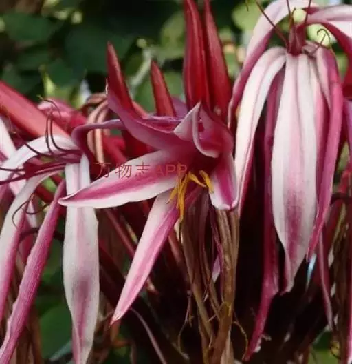 红花文殊兰又名西南文殊兰,拉丁文名Crinum latifolium L.多年生粗壮草本。分布于广西、贵州、云南。常生于河床、沙地。越南至印度及马来西亚也有分布。