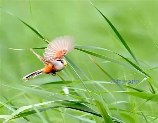 震旦鸦雀也是快乐的小精灵,结小群栖于芦苇地,它们的叫声急促而连贯,非常好听,唱得高兴的时候,它们还会展翅欢唱,可是力度并不大,但扇翅膀的频率比较高,一边振翅,一边低唱。