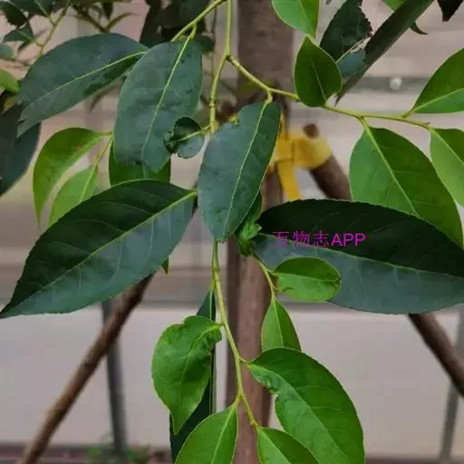 乔木,高3-14米;小枝疏生短柔毛,后变秃净。叶薄革质,互生,卵形或狭卵形,长5-14厘米,宽2.5-6.8厘米,顶端短渐尖或尾状渐尖,基部钝或近圆形,稀楔形,稍下延,叶缘离基以上具小锯齿,侧脉8-12对,腹面暗黄绿色,无毛,背面亮绿色,中脉疏生短柔毛,后变秃净;叶柄长6-10毫米,初被短柔毛,后秃净,无托叶。
