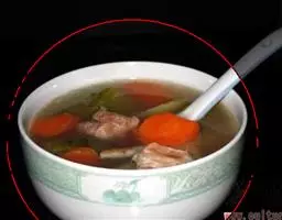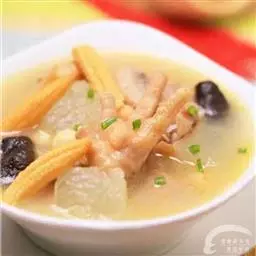 (一)将鸡精清汤块加入沸水中,做成清汤、备用。