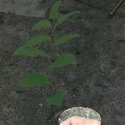 同一般阔叶树育苗基本相同,即可大田育苗也可作床育苗。前法育苗苗壮,后法育苗产苗量多。每亩播种量10市斤左右。播前种子处理,用碾子碾,破荚壳即可。播种前还要用60℃~70℃温水侵种催芽,种子部分裂嘴时播种,这样5~6天即可出苗。育苗地以有灌水条件的中性沙壤土为最好。碱性地发芽率低,湿地育出的苗木容易烂根。播种地每亩施底肥3000~4000斤,粪肥要腐烂,捣细,拌匀。