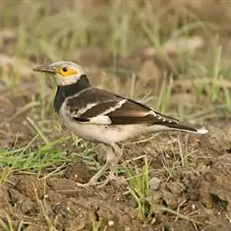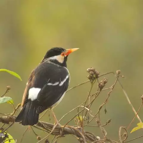 斑椋鸟:是中等体型的黑白色椋鸟,体长24厘米。头顶、头侧、翼斑、腰及腹部白色,喉、胸及上体余部黑色,…