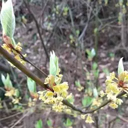 落叶灌木或小乔木,高可达8米;树皮平滑,灰色或灰白色。冬芽(混合芽)长角锥形,长约1.5厘米,直径4毫米,芽鳞裸露部分红色,幼枝条白黄色,初有褐色毛,后脱落成无毛。叶互生,宽椭圆形、椭圆形、倒卵形到狭倒卵形,长4-9厘米,宽2-4(6)厘米,上面深绿色,下面淡绿色,被白色柔毛,纸质,羽状脉,侧脉每侧(4)5-6条;叶枯后不落,翌年新叶发出时落下。