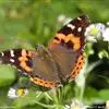 大红蛱蝶Vanessa indica Herbst,翅黑褐色,外缘波状。前翅M1脉外伸成角状,…