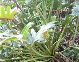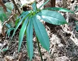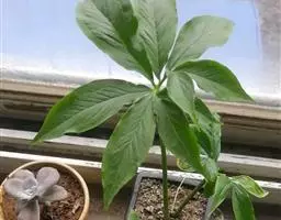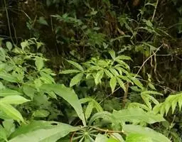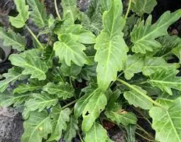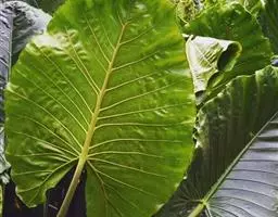 叶片轮廓圆形,直径40-50厘米,亮绿色,具光泽,7-13深裂,裂片披针形或线状披针形,渐尖,最外侧的镰状,各裂片基部联合1/5-1/4,中肋在背面隆起,侧脉纤细,斜伸,集合脉与边缘稍远离。花序柄长40-60厘米。