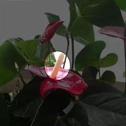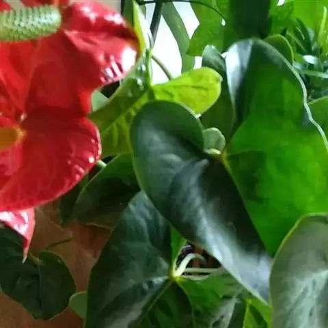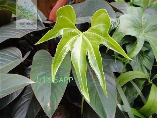 掌叶花烛 掌叶花烛既可观叶又可赏花的室内优秀盆栽植物。花开时,绿叶红花,佛焰苞肥厚硕大,色彩艳丽,光亮如漆。肉穗花序挺立于佛焰苞上,颇像彩色的烛台,异常艳丽、新奇。掌叶花烛花期可持续几周,是优良的盆花。不开花时,叶形优美,色泽嫩绿,又是极其优美、观赏价值高的观叶植物。常置于家庭案几、客厅墙角的几架上及会议室、饭店雅间摆放,是上等的室内绿化、美化观赏植物,深受人们喜爱。