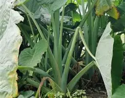 茎上升,长1米以上,粗5厘米。叶柄圆柱形,长几达1米,具浅槽,关节长。