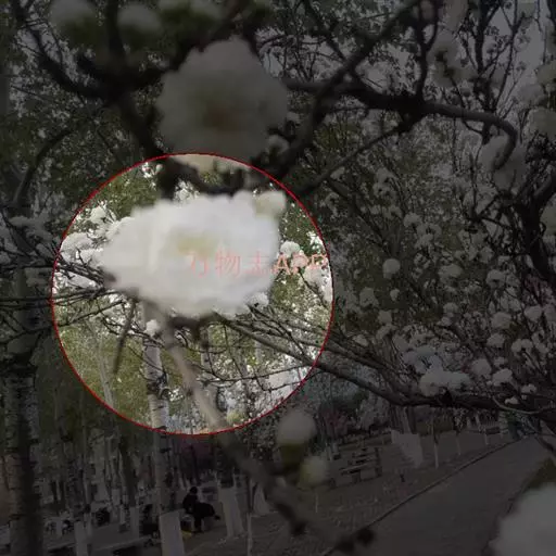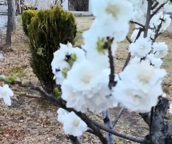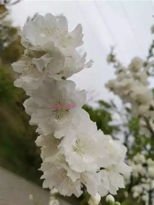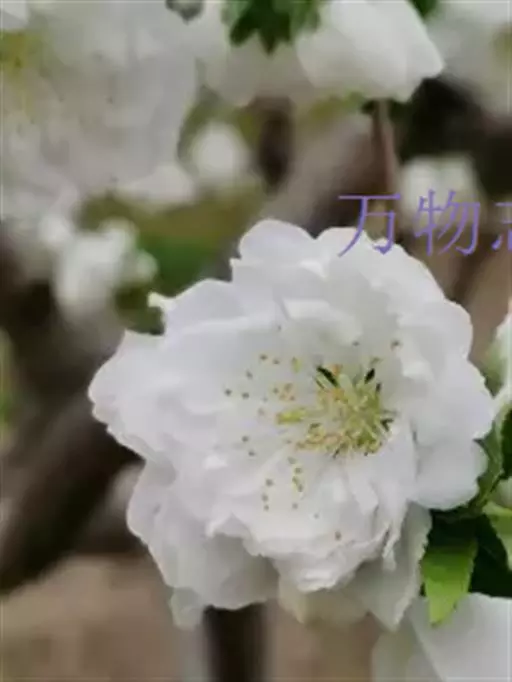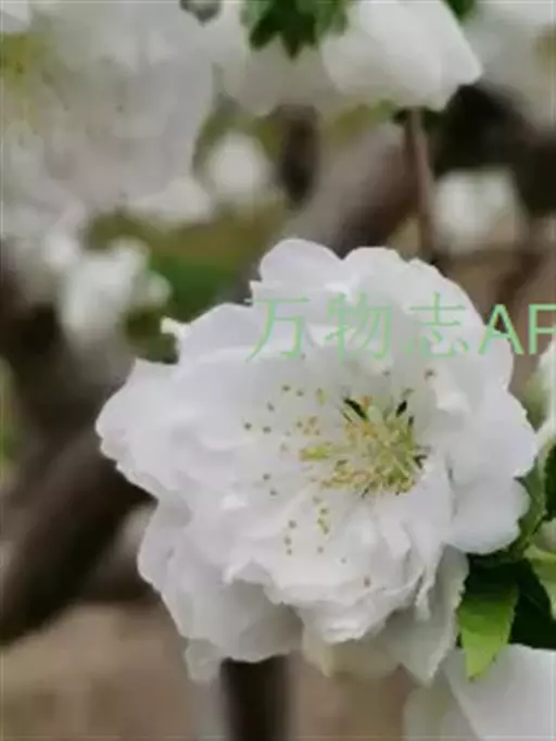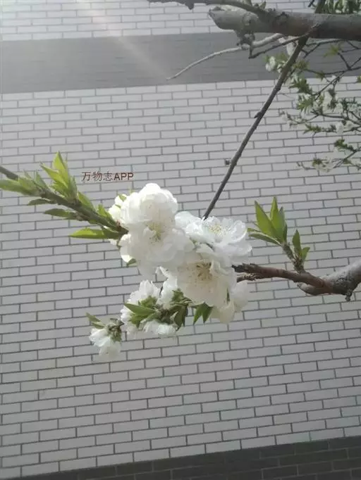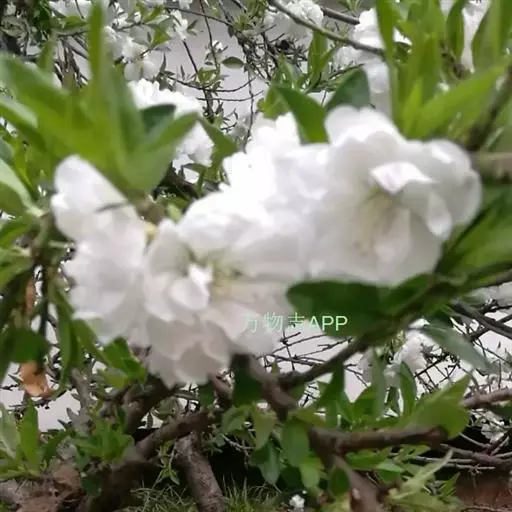 千瓣白桃(群芳谱)f. albo-plena Schneid.花半重瓣,白色。