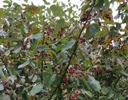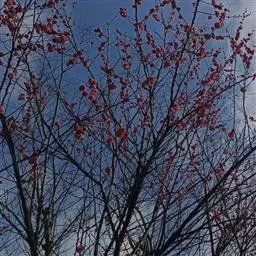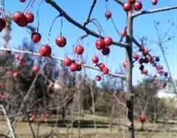 乔木,高3-8米;树冠宽广而平展;树皮暗红褐色,老时粗糙呈鳞片状;小枝细长,无毛,有光泽,绿色,向阳处转变成红色,具大量小皮孔;冬芽圆锥形,顶端钝,外被短柔毛,常2-3个簇生,中间为叶芽,两侧为花芽。