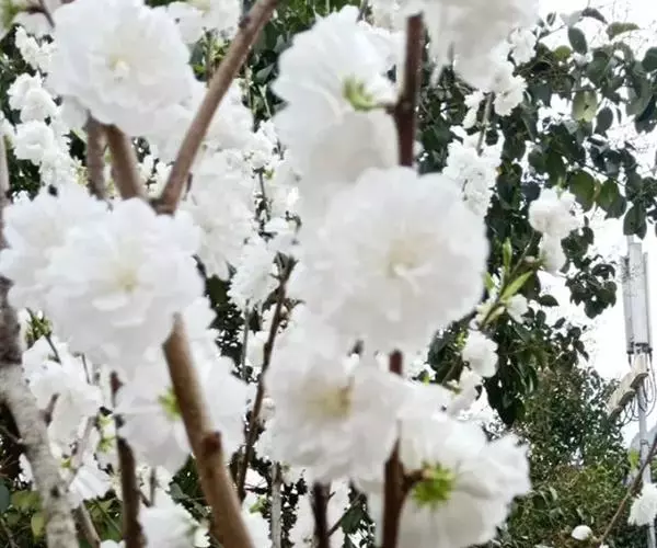 属于观赏桃花类的半重瓣及重瓣品种,统称为碧桃。华东地区碧桃花期是3月~4月,花朵丰腴,色彩鲜艳丰富,花型多。常见的品种有红花绿叶碧桃、红花红叶碧桃,白红双色洒金碧桃等多个变种。碧桃具有很高的观赏价值,在小区、公园、街道随处可见的美丽植物。
