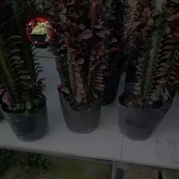 多浆肉质灌木,株高25-35厘米,老枝灰褐色,木质化,嫩枝淡绿 鹿角海棠 色,分支处有节间。