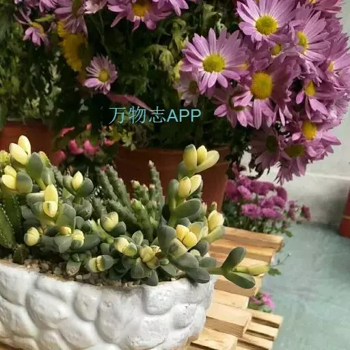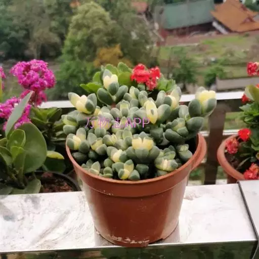 鹿角海棠植株常呈匍匐丛生状,在欧美地区经常被用于盆栽或吊 鹿角海棠 盆栽。绿色肥厚的叶片向外延伸,有很好的垂吊感。与其他品种的多肉植物合栽,也能起到很到的点缀作用。花季开花时,金黄鲜艳的花朵为盆栽增色不少,将它悬挂在室内,更显生机盎然,凸显出节日气氛。