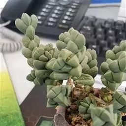 鹿角海棠是番杏科鹿角海棠属多浆肉质灌木。老枝呈灰褐色,木质化,嫩枝为淡绿色,分支处有节间;叶交互对生,…