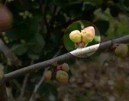 ①炭疽病。在植株的果、叶、枝梢、花芽和叶芽上均有发生。嫩叶受害,病斑多在叶缘或叶尖,呈半圆形或不规则形,黑褐色,具水渍状轮纹,边缘紫红色,后期病部下陷,病斑中心灰白色,内有轮生小黑点。枝梢受害,病斑多发生在新梢基部,少数在梢中部,椭圆形或梭形,略下陷,边缘淡红色,病斑后期黑褐色,中部灰白色,其上生黑色小粒点,皮层纵向开裂,若病斑环梢一周,梢即枯死。枝干上的病斑呈梭形溃疡或不规则下陷,剥去皮层,可见木质部变黑色。花芽和叶芽受害变黑色或黄褐色,无明显边缘,后期呈灰白色,上生小黑点,严重时芽枯蕾落,严重落果、落蕾、落叶、枝枯,甚至整株衰亡。