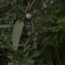 浆果球形,直径1-2厘米,有8棱,熟时深红色,有种子1-2颗。花期春季。