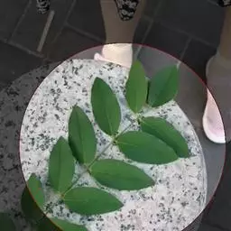 叶片纸质,卵形至卵状披针形,长3.2-4.2厘米,宽2.3-3厘米,先端渐尖或短尖,钝头,基部圆形或微心形,上面绿色发亮,下面颜色较浅,两面无毛,有无数透明腺点,侧脉每边约5条,稍明显,以近45度开角斜出,离边缘约2毫米处汇成边脉;叶柄极短,长约1.5毫米。