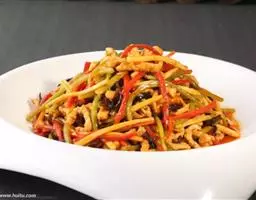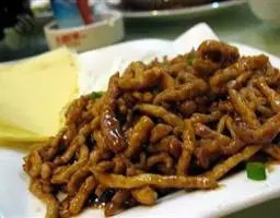 京酱肉丝,是一道知名度很高的菜肴,它是北京菜中的经典代表菜之一。制作时选用猪瘦肉为主料,辅以甜面酱…