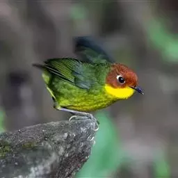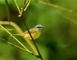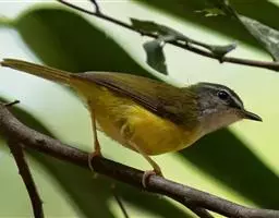 黑脸鹟莺:体长10厘米,是有特色的体小而多彩的莺鸟。粗眉纹,颏、喉及尾下覆羽黄色,脸罩黑,…