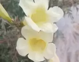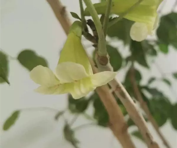 花序腋生或侧生,少花,为总状花序或少分枝的圆锥花序,比叶短。花萼淡红色,筒状,不整齐,长约1.8cm,3-5浅裂。花冠淡黄色,钟状,长3.5-5cm,直径约15mm,最细部分直径达,mm,内面被柔毛,裂片阔肾状三角形,宽10mm。