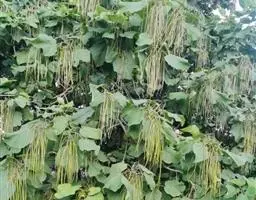 在海南南部种子于8-9月大量成熟,广西等地于10月下旬成熟,各地气候不同,种子成熟期不一。当圆条状长果实由粉绿色转呈黄褐色,扭曲,并开裂时,及时采摘。采收后的果实可在阳光下暴晒,不断翻动,果实裂开。种子自然脱出,及时收集,种子轻而薄,易被风吹散,用袋装置于通风凉爽处,但不宜在自然状态下久藏,用低温干燥贮藏,发芽力可保持1年。种子净度63%-77%,千粒重1.00-1.49kg。