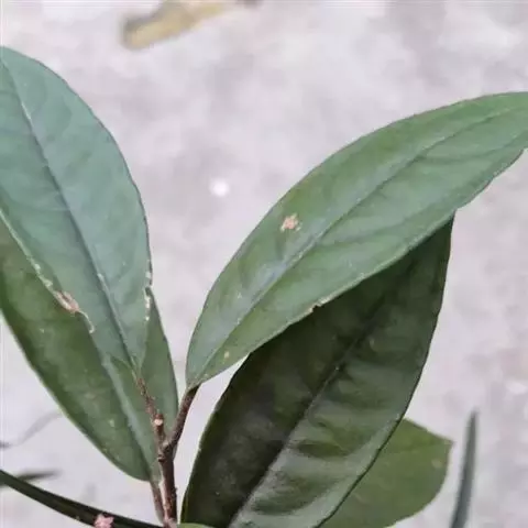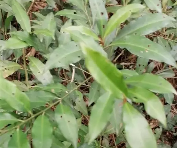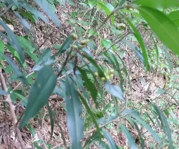 灌木或灌木状小乔木,高约2米,可达6米以上;小枝细,无毛,有纵纹,嫩时被锈色鳞片。叶片坚纸质,长圆状披针形、椭圆状披针形至倒披针形,顶端渐尖,基部楔形,长8-16厘米,宽2-4厘米,全缘,两面无毛,背面多少被鳞片,中脉明显,侧脉极多,不明显,连成近边缘的边缘脉,无腺点;叶柄长5-10毫米,幼时被鳞片。