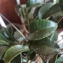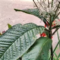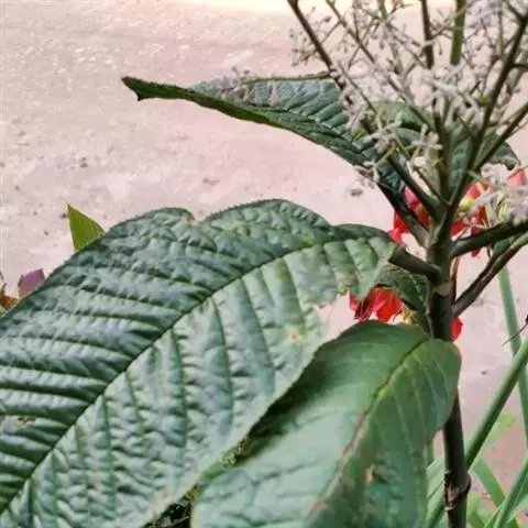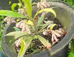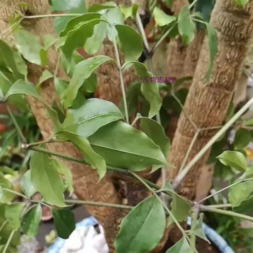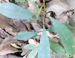 幼枝被绣色鳞片。叶长圆状披针形、椭圆状披针形或倒披针形,长8-16厘米,宽2-4厘米,全缘,下面稍被鳞片;叶柄长0.5-1厘米,幼时被鳞片。聚伞花序或亚伞形花序,腋生,稀着生于侧生花枝顶端,长3-5厘米。