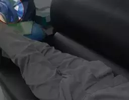 蓝鲸的鳍肢长3-4米。上方为灰色,窄边白色。下方全白。头部和尾鳍一般为灰色。但是背部,有时还有鳍肢通常是杂色的。杂色的程度因个体而有明显不同。有些可能全身都是灰色,而其他的则是深蓝,灰色和深蓝色相当程度的混合在一起(grey-blue)。