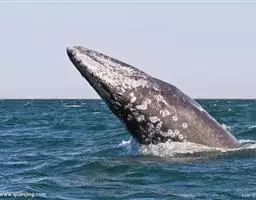 一头成年蓝鲸能长到非洲象体重的30倍左右。蓝鲸平均长度约25米,最高纪录为33.5米左右。雌鲸大于雄鲸,南蓝鲸大于北蓝鲸。上面观,吻宽而平。蓝鲸背鳍小,高约0.4米,位体后1/4处。鳍肢较小,其长占体长的15%。尾鳍宽为体长的1/3至1/4,后缘直线形。蜇沟55-88条,最长者达于脐。每侧须板270-395枚。体背深苍灰蓝,腹面稍淡,口部和须黑色。 [1-2]