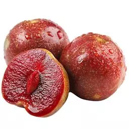 美国品种,树势强,树姿直立。果实9月上旬成熟,单果重120g,卵圆形,端正,果面鲜红色,果粉厚,果肉黄色,肉质致密,汁多,纤维少,味甜,微香,可溶性固形物14%~16%,核小,长圆形,离核,品质上。