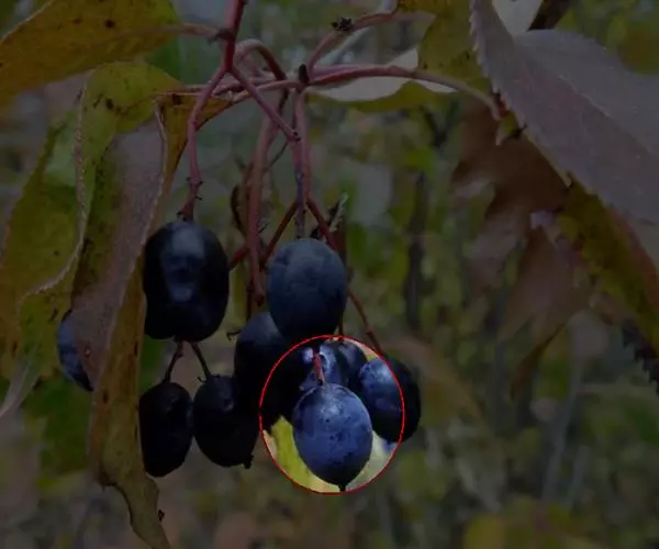 果实长卵形,果实蓝黑色。果粉厚,果肉淡黄色,果肉质地硬韧,甜酸,耐贮运,鲜食品质上等,成熟期较晚。