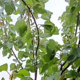 树冠宽卵形,树干深褐灰色,开裂,枝条无刺或稍有刺;老枝红褐色,无毛,皮起伏不平,当年生小枝淡红色或灰绿色,有纵棱条,幼时微被短柔毛,以后脱落近无毛。冬芽卵圆形,红褐色,有数枚覆瓦状排列鳞片,通常无毛。