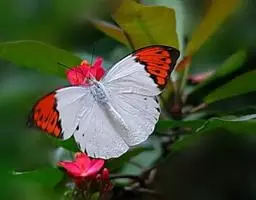 鹤顶粉蝶是鳞翅目粉蝶科鹤顶粉蝶属昆虫,又称端红蝶。雄蝶翅白色,前翅前缘及外缘黑色,…