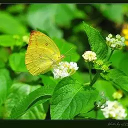 纹黄蝶,翅面黄色,缘毛桃红色;前翅外缘宽的黑边中有几个黄色斑,中室端部有一个黑斑;后翅外缘的黑色斑…