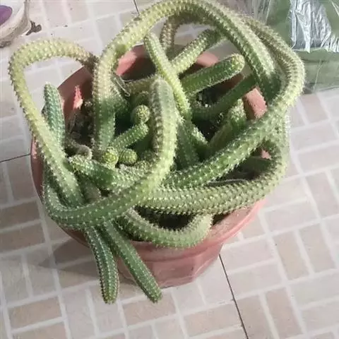 樱麒麟是仙人掌中最原始的一群,也是唯一具有木质茎和叶片的仙人掌类群。它茎杆处聚有针刺,如七星并列,故东南亚华人称它“七星针”。