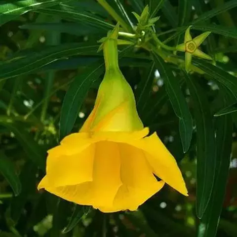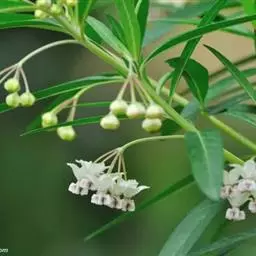 唐棉,株形直立,全株具白色乳汁;叶:线形似柳叶,色浓绿,背面淡绿色,对生;花:繖形花序,腋生,乳白…