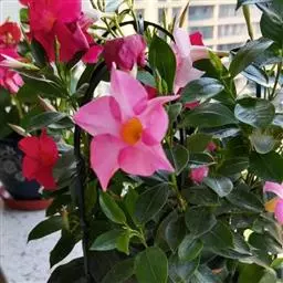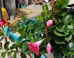 红蝉花(学名:Mandevilla sanderi (Hemsl.) Woodson)是夹竹桃科飘香藤属植物,常绿藤本灌木。全株有白色乳汁,叶对生或3-4叶轮生,全缘,长卵圆形,长15-20厘米,宽5-10厘米。花腋生,花冠漏斗形,长10-15厘米,径约10厘米,漏斗状,花冠5裂桃红色,花色为红色、桃红色、橙红色,粉红等。花期主要为夏、秋两季。 [1-2]